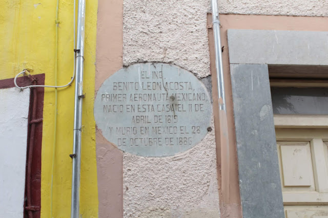 Engenheiro Benito León Acosta, primeiro aeronauta mexicano, nasceu nesta casa (...)”.